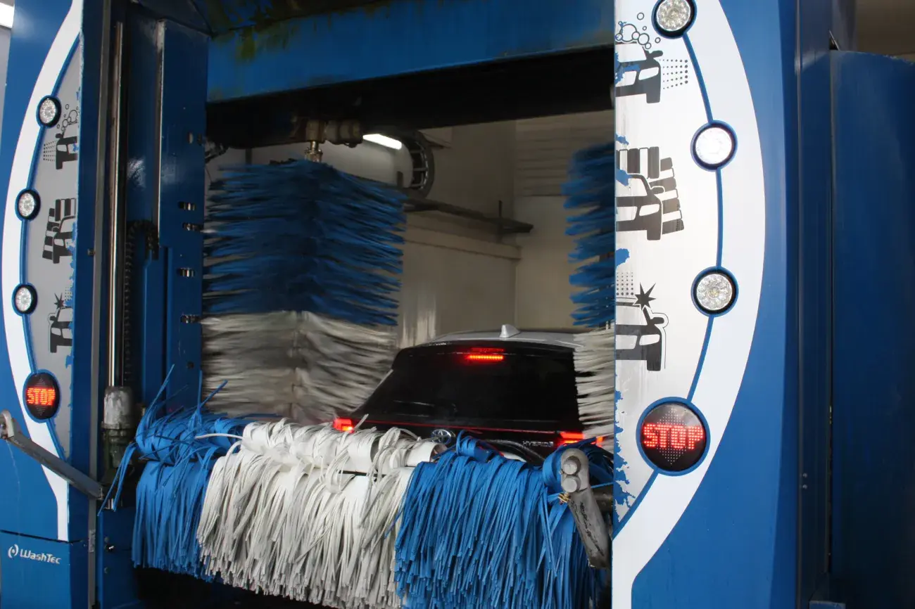 U rijdt met uw auto de wasstraat in tot de borden verspringen op STOP. De auto wordt nat gespoten en er wordt zeep aangebracht. De borstels gaan daarna rond uw auto om de auto op iedere plek schoon te krijgen. Inclusief uw wielen. Bij Gold, Diamond, en Platinum zit het schoonspuiten van de onderkant van uw auto met een hogedrukspuit ook inbegrepen.